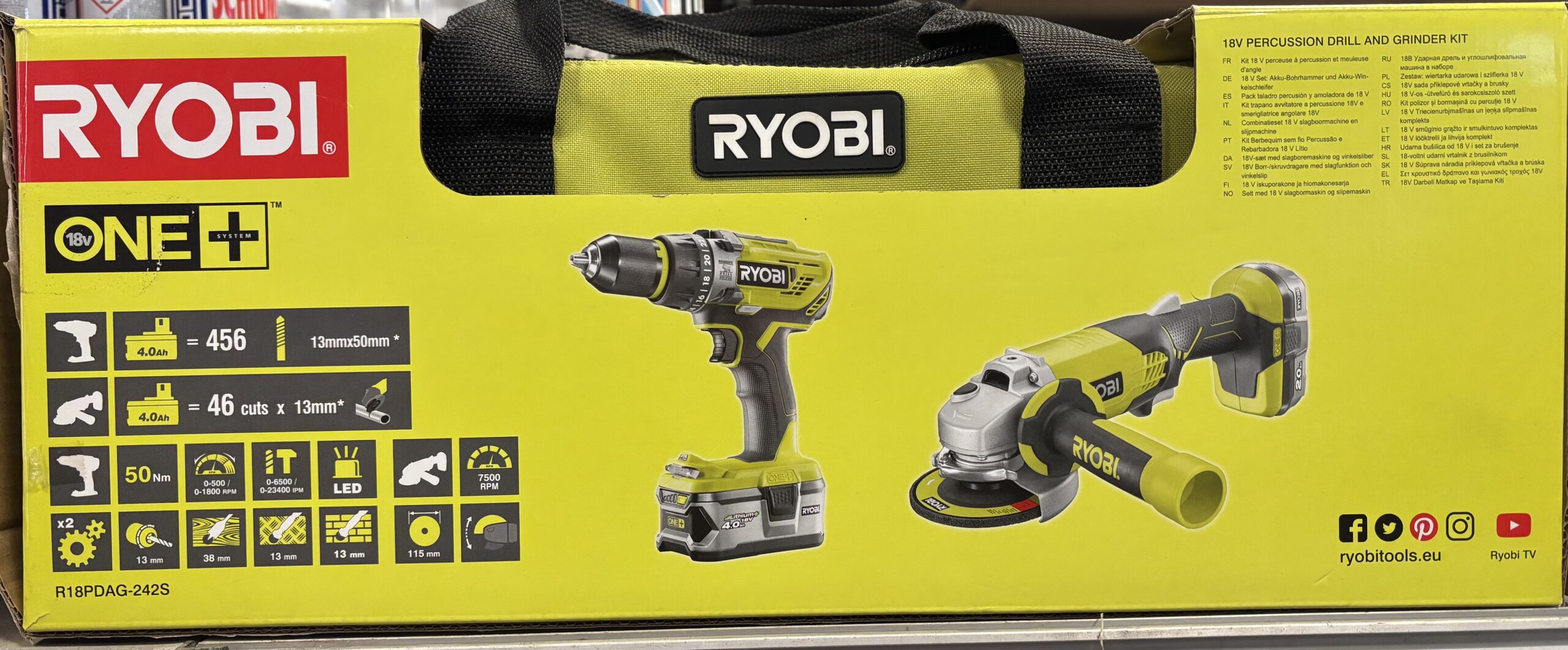 Kit trapano + smerigliatrice a batteria RYOBI R18pdag-242s